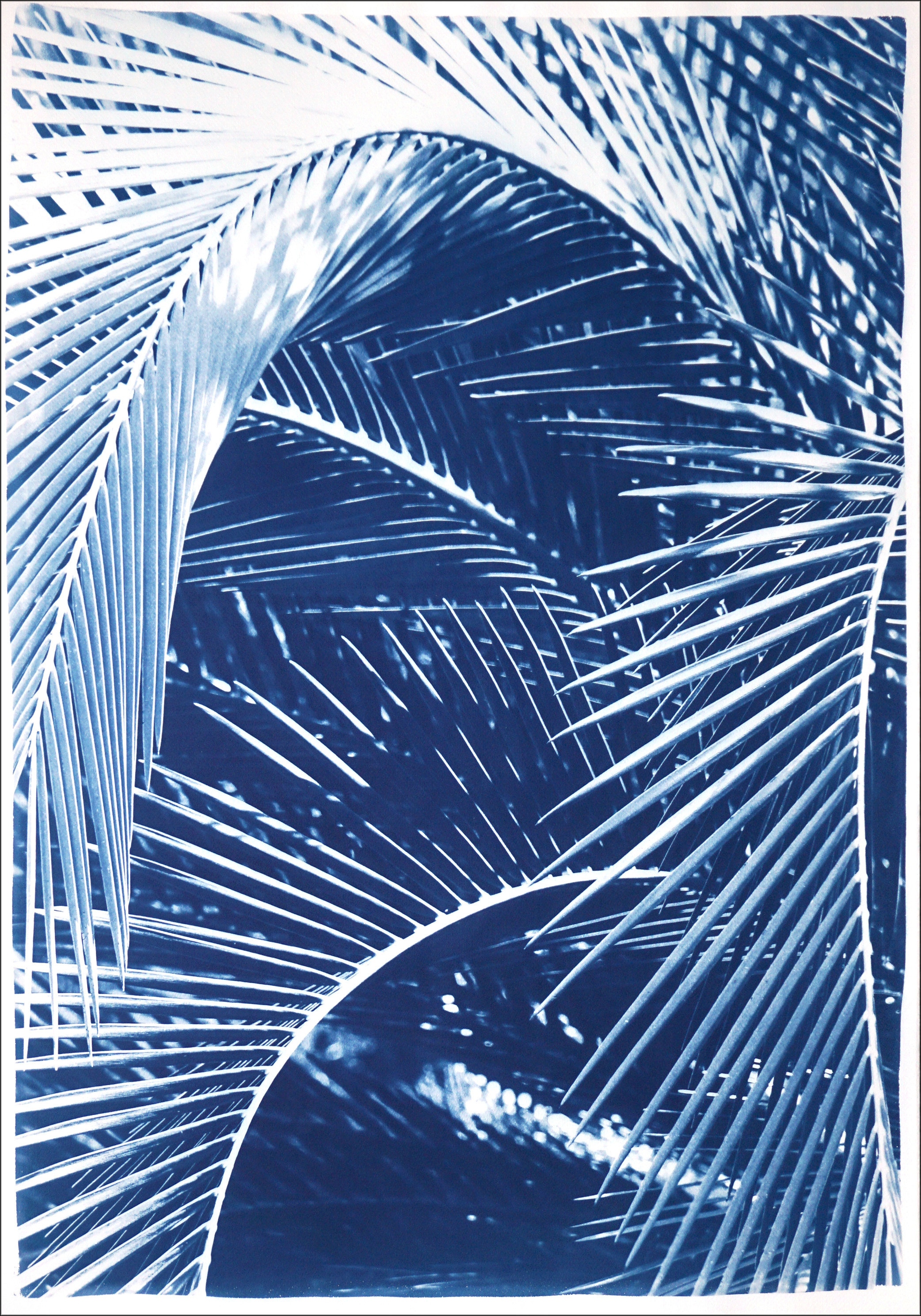 "Lush Palm Bushes" is a gorgeous original cyanotype diptych showing gorgeous tropical palm leaves.